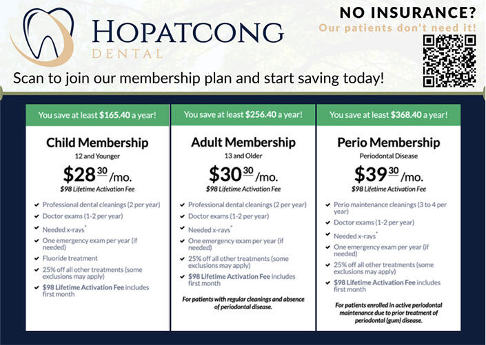 No insurance? No problem! We provide an in-office membership plan to help you receive the care you need at an affordable price. Call Hopatcong Dental today at (973) 398-6680 to schedule your consultation with Dr. Neda Shahrabi, our experienced dentist in Hopatcong, New Jersey, and sign up for our membership plan. We are excited to help you care for your smile!